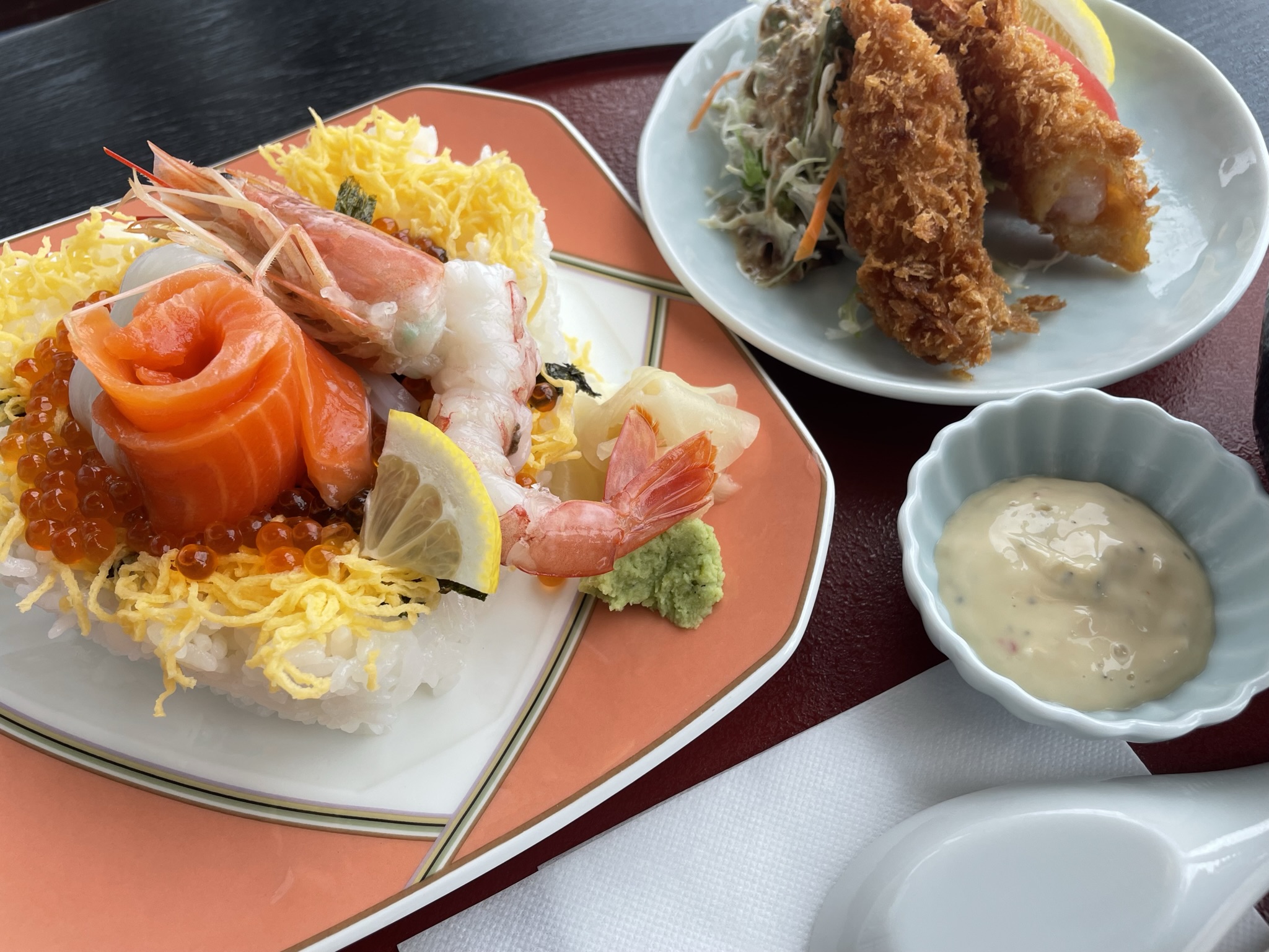 上の海鮮も、鳥取県産のイカをはじめ大きなエビやサーモンなども乗っていて大満足でした🙆♀️