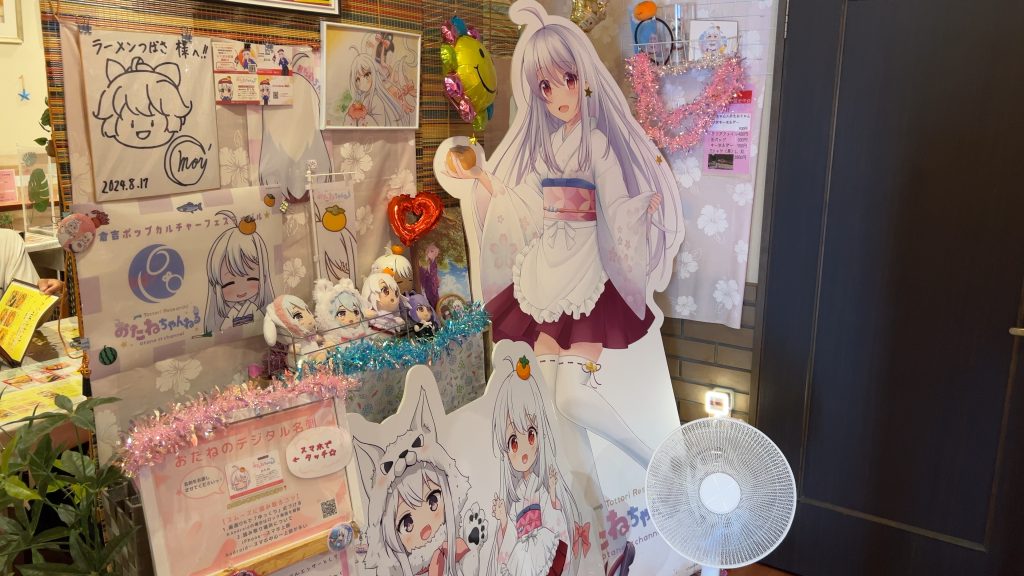 そして店内には、様々なご当地キャラクターのグッズか展示してあり、鳥取県ご当地VTuberである私のパネルやグッズもあるんですよ~