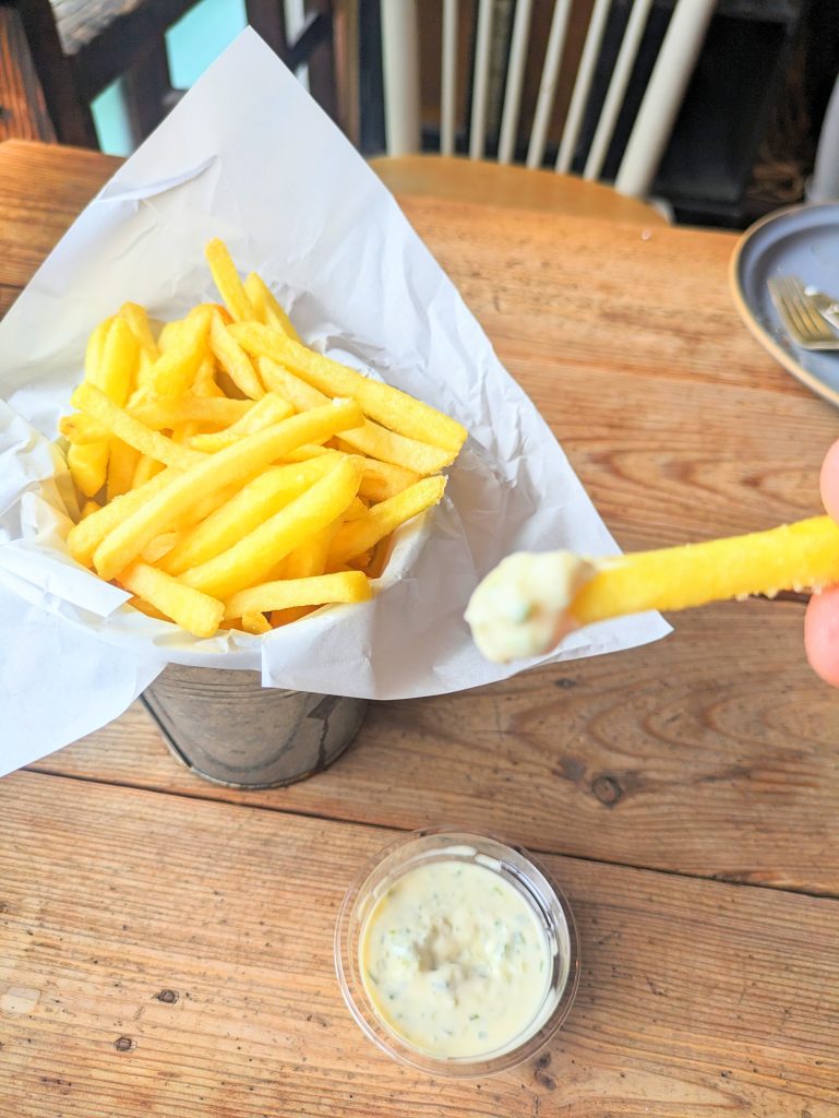 ✨「ヨナゴソース」✨には地元の特産品でもある✨「白ネギ」✨が混ぜ込まれていて、✨「白ネギ」✨の甘さとシャキシャキ食感、塩ポン酢の優しい酸味と皆生の塩が絶妙なバランスでついついバケツいっぱいのポテトが進んでしまう魅惑的な逸品でした♪😋✨