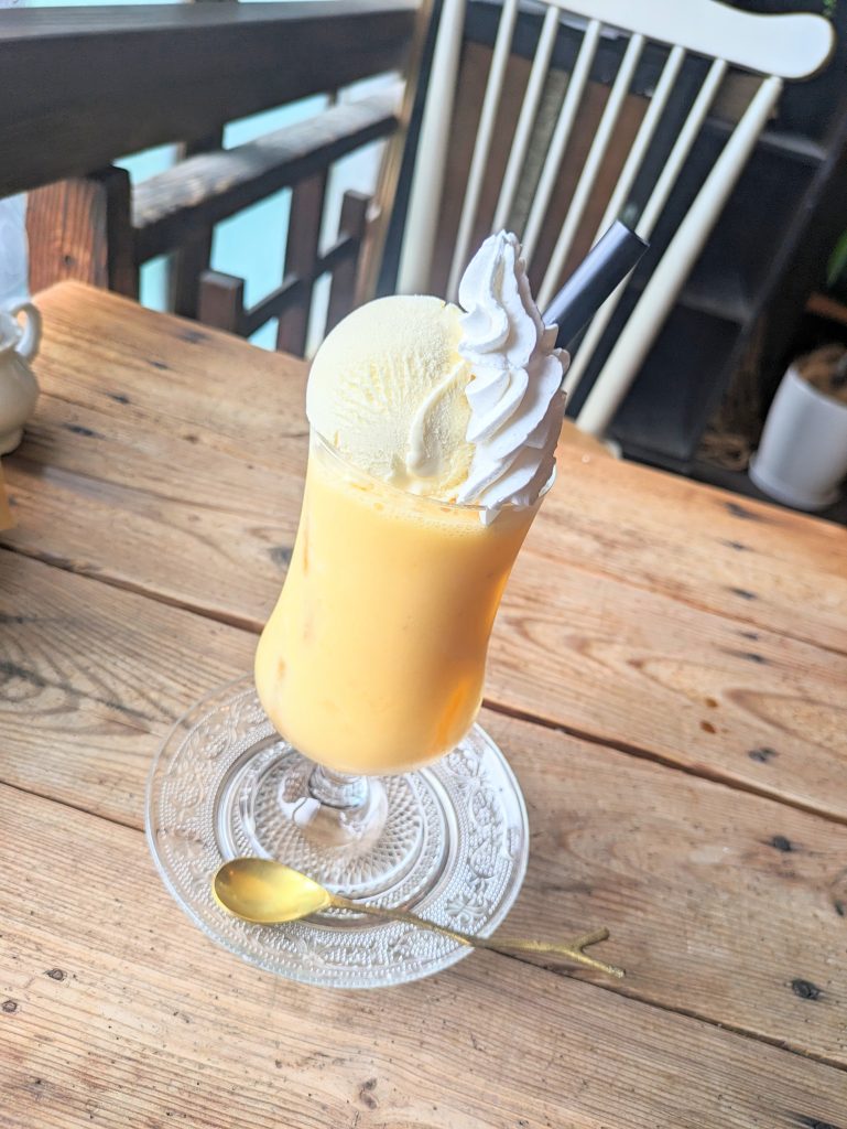 やっぱり✨Goods&Cafe みっくす✨さん♪と言えば✨みっくすじゅーす✨フルーツの酸味と牛乳の甘さが絶妙でした♪✨今回は✨みっくすじゅーす✨にアイスとホイップクリームをトッピング♪✨見た目も華やかでおしゃれで贅沢な逸品でした♪✨