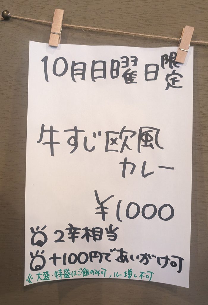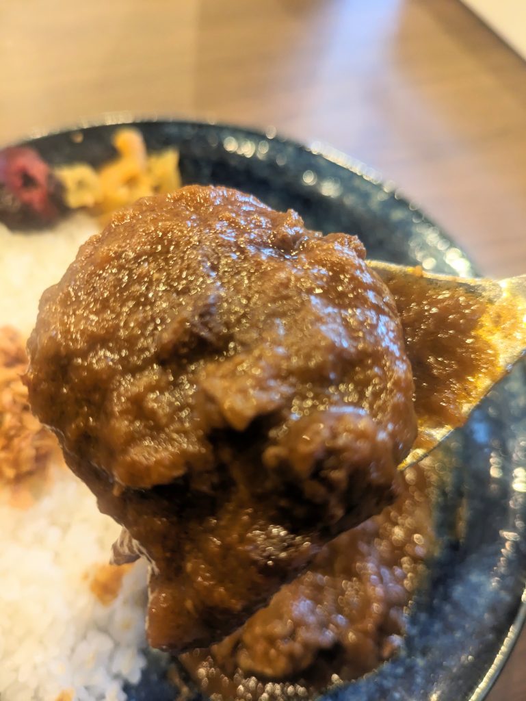 ※こちらの牛すじ欧風カレーはレギュラーメニューではありませんが、期間限定の提供(今後レギュラーメニューになるよう検討中とのこと。)やイベント等で提供される事がありますので要チェックです。