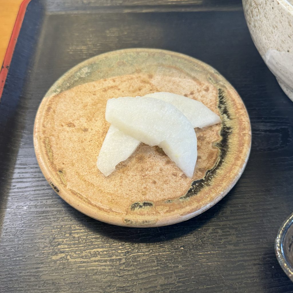 お蕎麦を頼むと一緒に付いてくる南部町、井田農園さんの「二十世紀梨」。