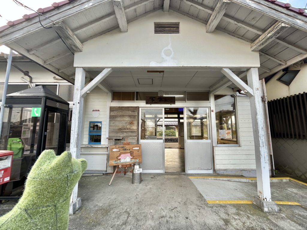 昔ながらの駅舎にちょこんと佇む姿は、まるで時の流れにそっと寄り添うよう。