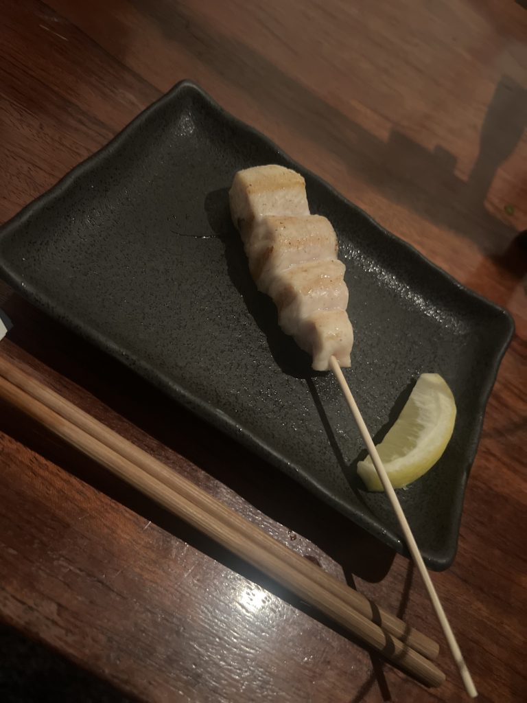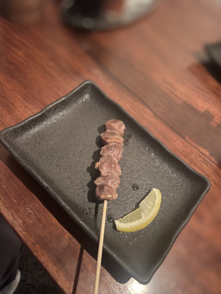 塩の味付けの炭火焼串は、程よい塩加減が素材の味を引き立てます。レモンを絞ると最初はレモンの酸味を感じ、その後に鶏の旨味が塩と共に、絶妙にマッチして、美味しく頂けました。