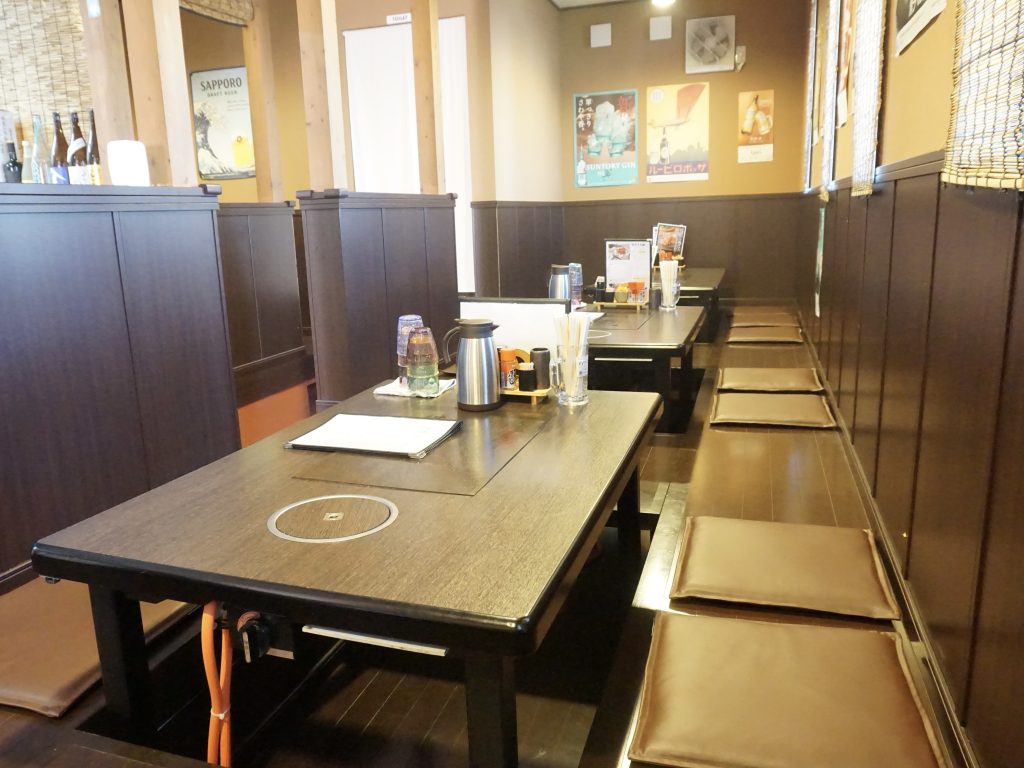 席構成は、掘りごたつタイプの4名席×3卓、6名席×2卓、カウンター5席。
