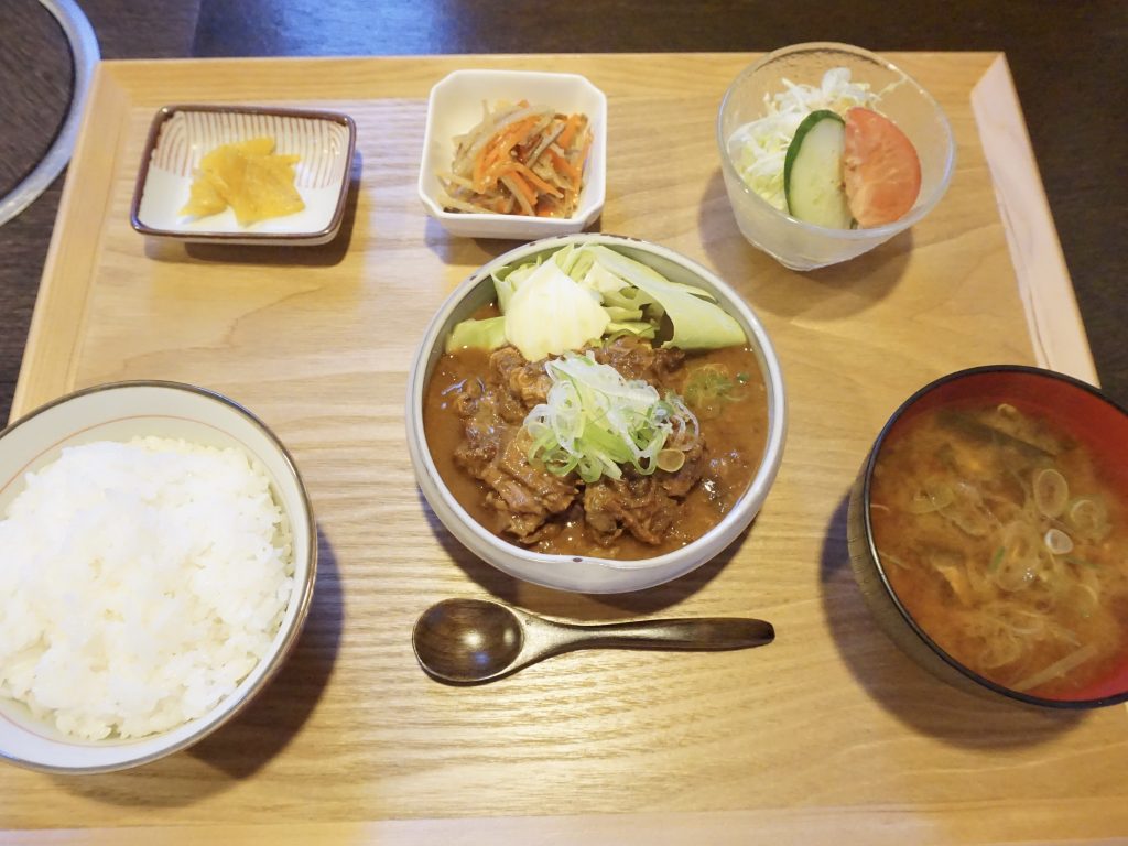 どて焼き定食(どて焼き、ご飯、味噌汁、サラダ、小鉢、お漬物付き)