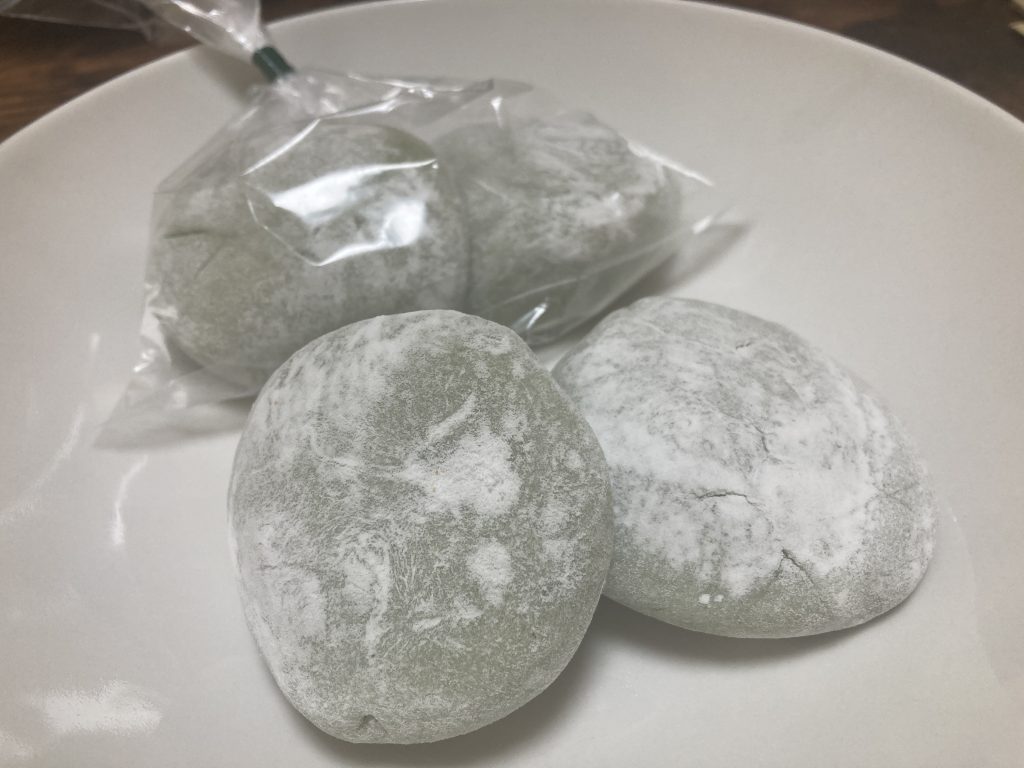 木曜日限定のよもぎあん餅は、よもぎの葉を使った素朴な味わい。