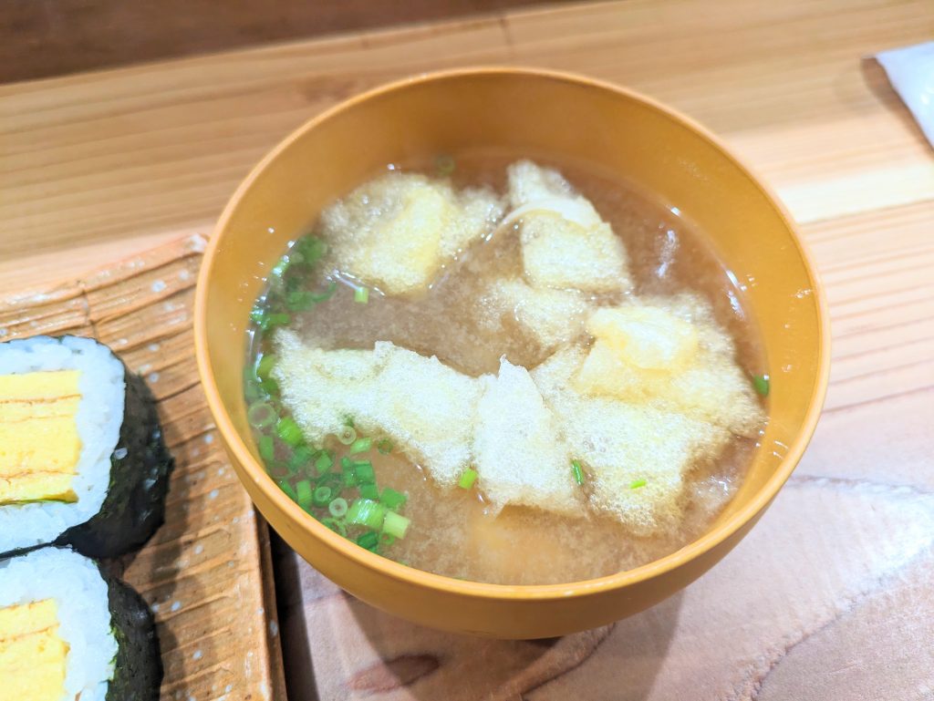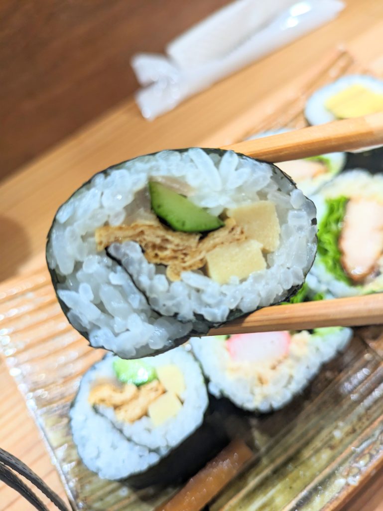 季節の野菜を使った色鮮やかなオリジナル巻き寿司には味わいが違う米子産のお米を2種類ブレンドして炊いた酢飯が使われており、程よい酸味が効いていて一口入れるとふわっと口の中でほどけていき食べてると幸せな気分になってしまう素敵な逸品でした♪✨