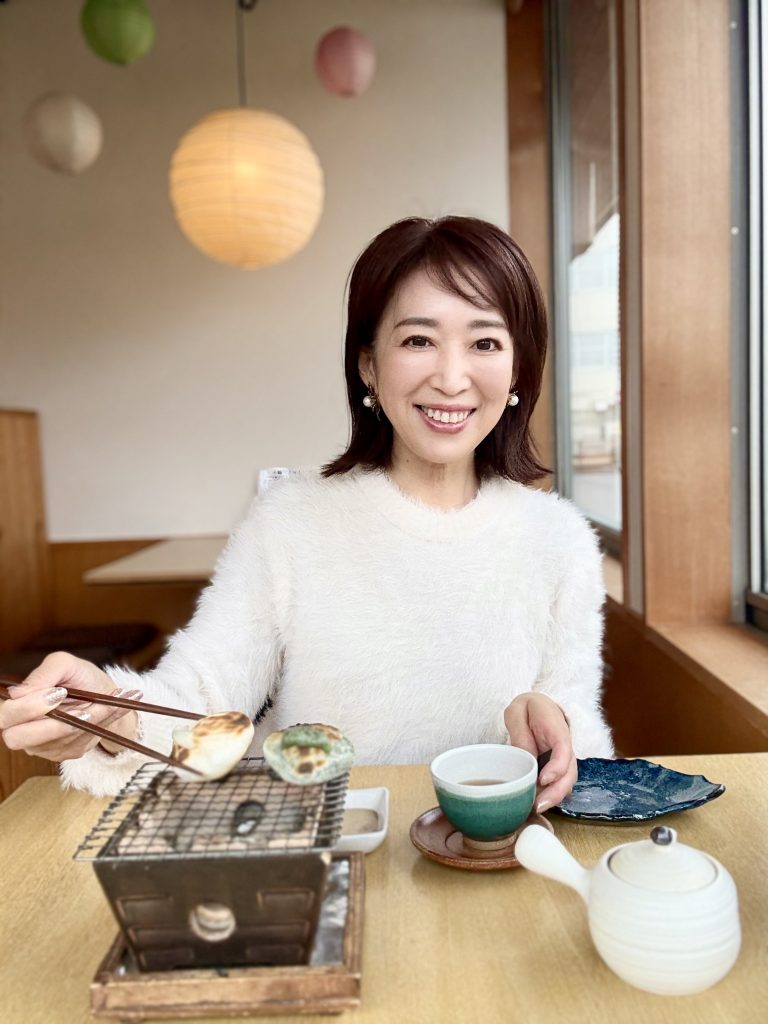 目の前の七輪でじっくり焼く丸餅は、ぷくっと膨らみ、表面は香ばしく中はもっちもち。