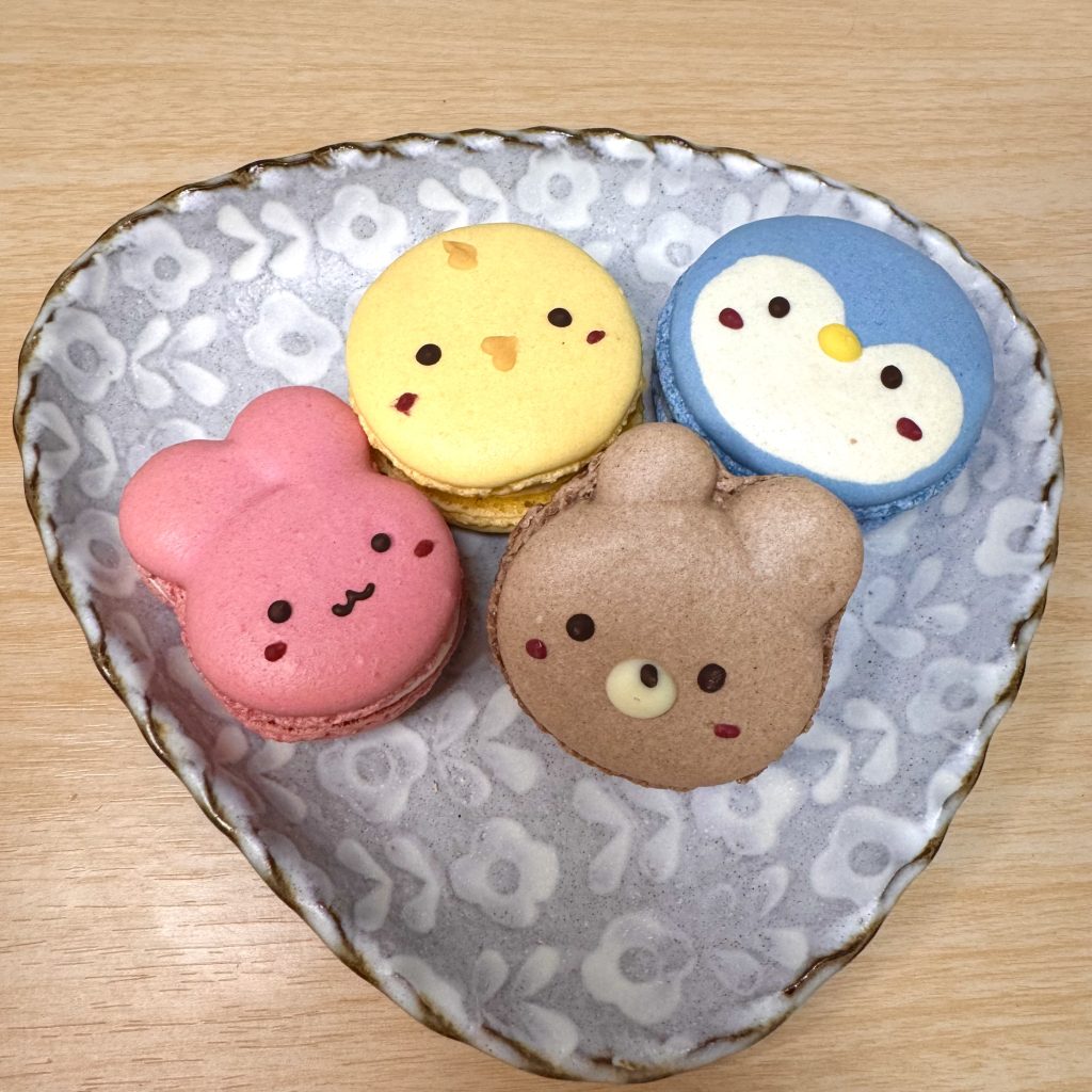 ショーケースを眺めると、ひときわ目につくのが、動物のかわいいマカロンたち!!