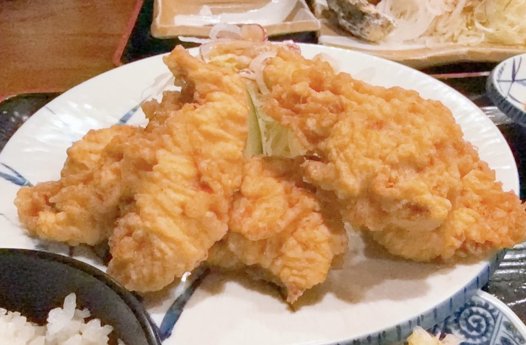 運ばれてきたのは、ファンも多い「かしわ空揚定食(950円)」。