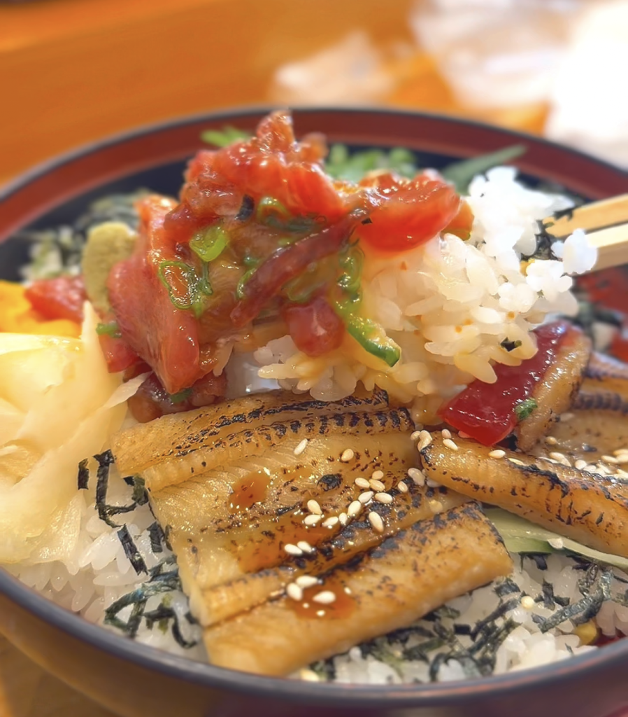 名前の通り、「マグロのづけ」と「煮穴子」が乗った贅沢な丼です🐟✨