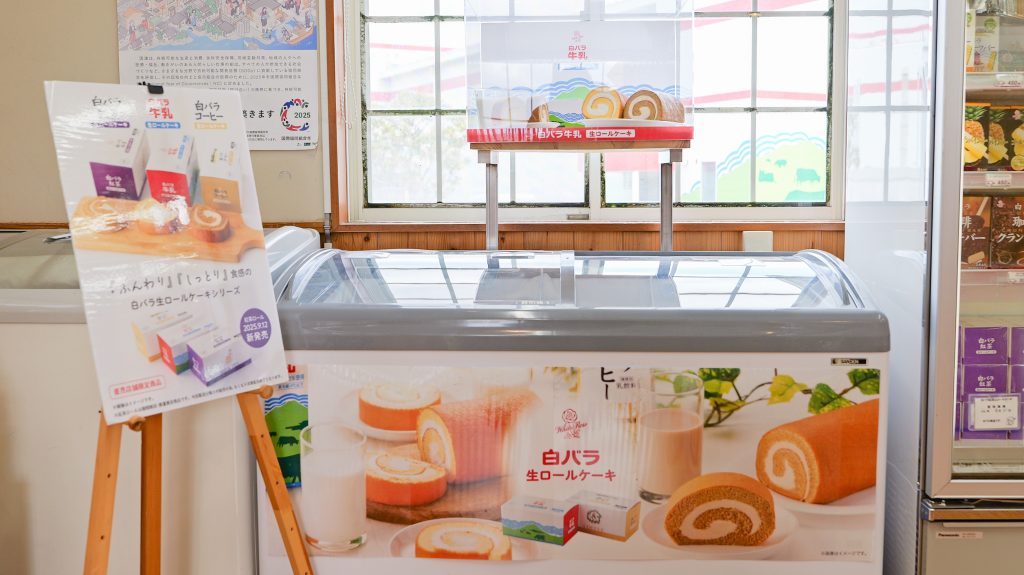 中でも注目なのが、2024年6月1日「牛乳の日」に発売された鳥取県の生乳から作られる白バラ牛乳の魅力を伝える商品「白バラ牛乳生ロールケーキ」。